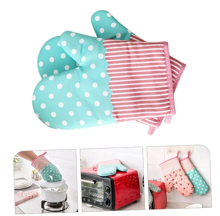 1Pair Cooking Glove Microwave Oven Mitt Insulated Non-slip Glove Assorted Color and Design