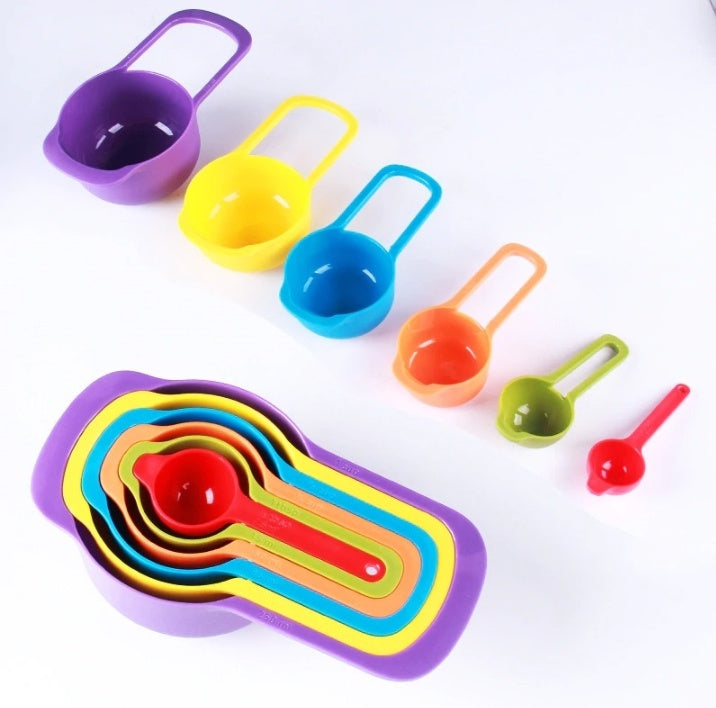 The 6 Pcs Multi-measuring Cups & Spoon set is a must-have for any kitchen. Made with durable materials, it includes a variety of sizes for precise measurements. Perfect for baking and cooking, this set will make meal prep a breeze. Improve your accuracy and efficiency with this essential tool.