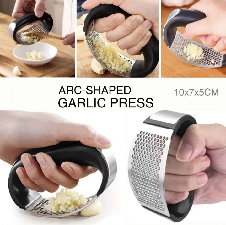 Introducing the Stainless Steel Garlic Press Crusher - a must-have kitchen tool for effortless and efficient garlic and ginger mincing. Made from high-quality, food grade stainless steel, this eco-friendly tool is durable and easy to use. Say goodbye to messy and time-consuming garlic chopping with this manual rocking mincer.